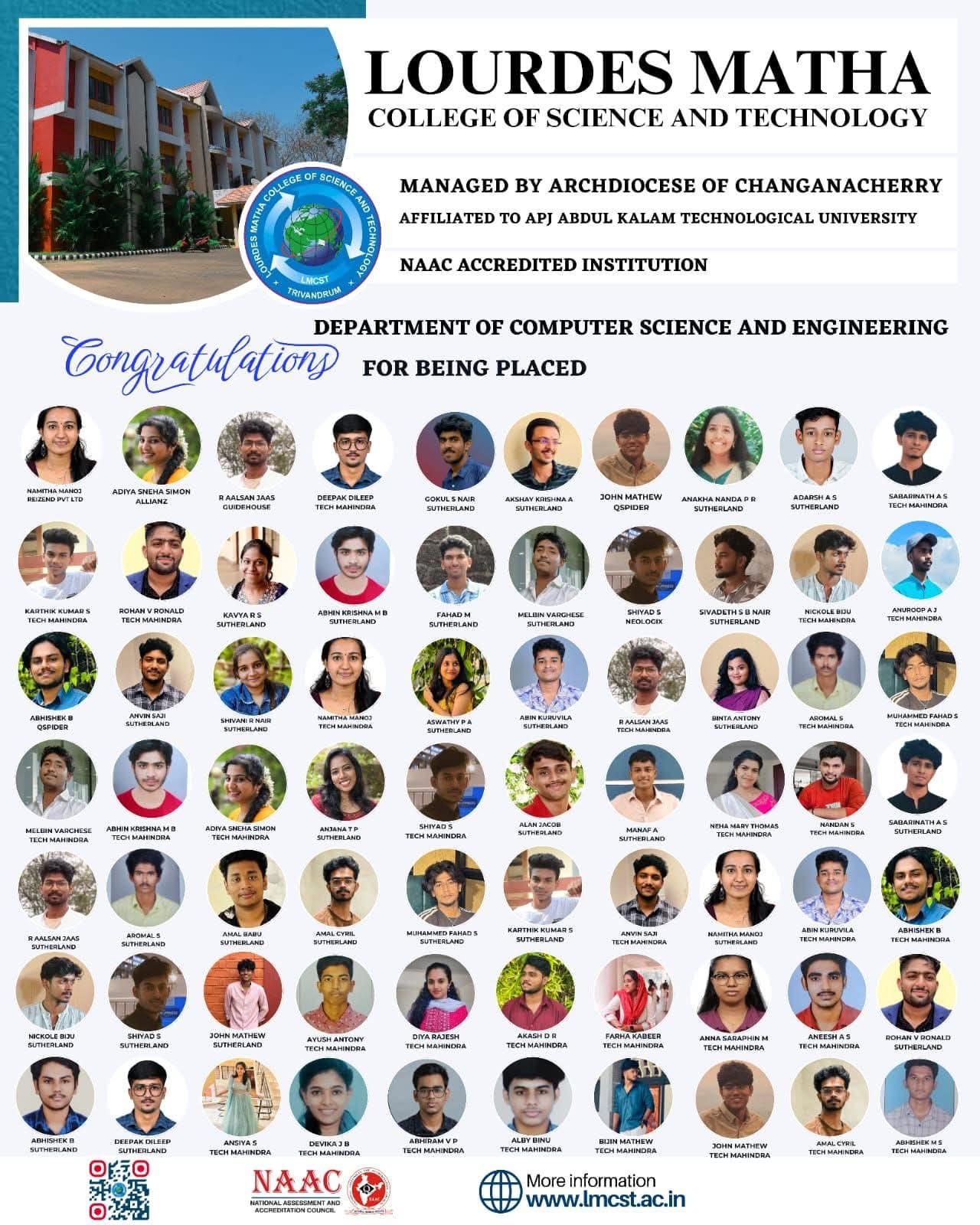 The Department was established in the year 2002, with the objective of imparting quality education in the field of Computer Science and Engineering. Our faculty members are dedicated in providing our students with the best possible education by offering courses in the latest technology and providing the attention and support that is needed to produce talented graduates in the field of Computer science and Engineering. The Department has well equipped computing laboratories and a rich repository of software covering a wide spectrum of applications. The Computer Science & Engineering Department now offers Post Graduate Programme (M.Tech – Computer Science & Engineering) also.