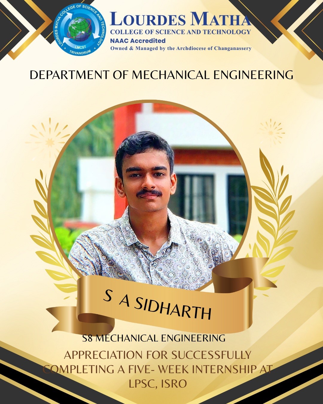 Mechanical Engineering is the most coventional branch of Engineering finding application in all spheres of human activity. Presently it is the most sought-after engineering discipline with respect to career prospects of young Engineering personnel. The Department of Mechanical Engineering of Lourdes Matha College of Engineering and Technology, established in 2005, is specifically oriented towards moulding young engineering students to top class professionals capable of taking up the challenges of the modern day.